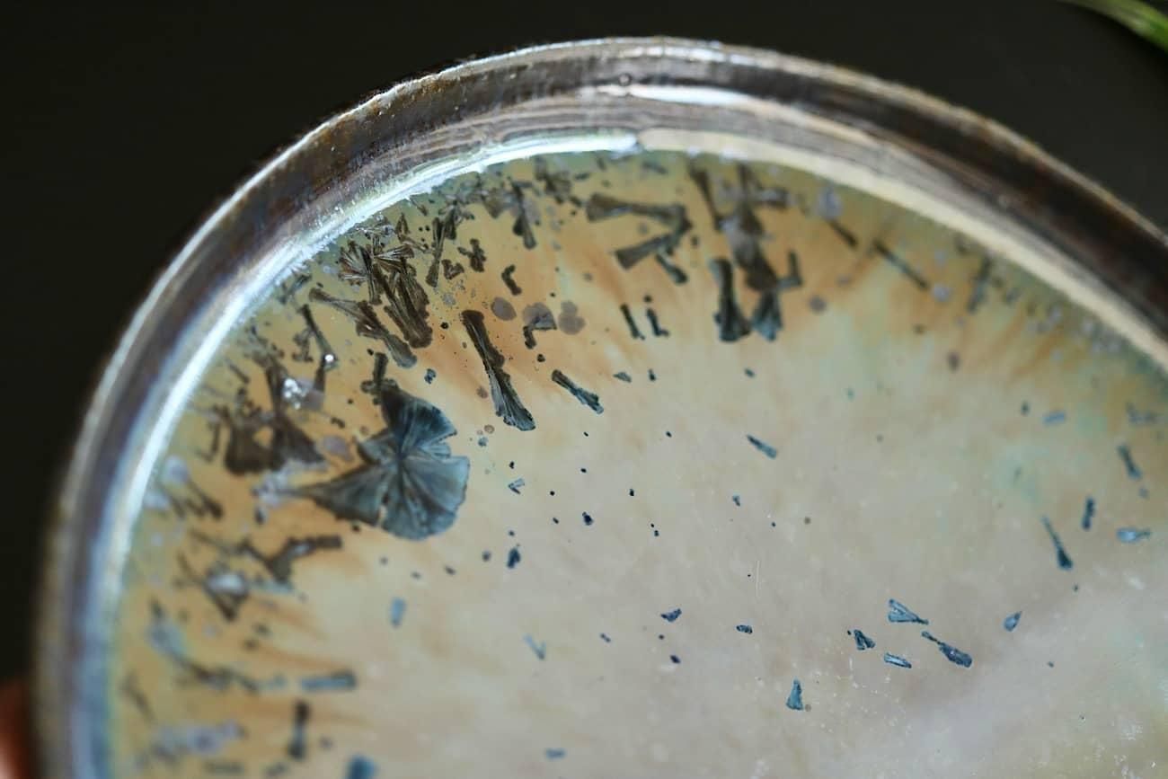 Crystalline glaze is a special glaze in which crystals of zinc silicate form in the glaze during the firing process in the kiln.