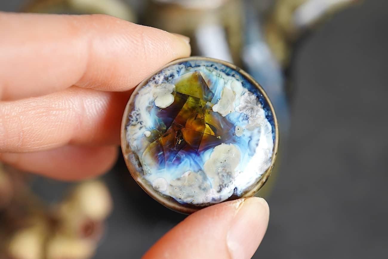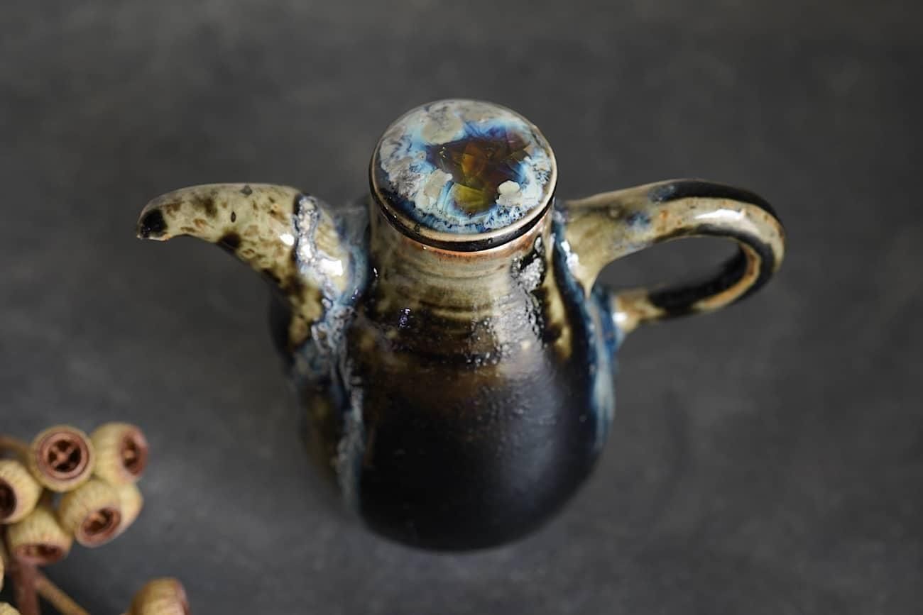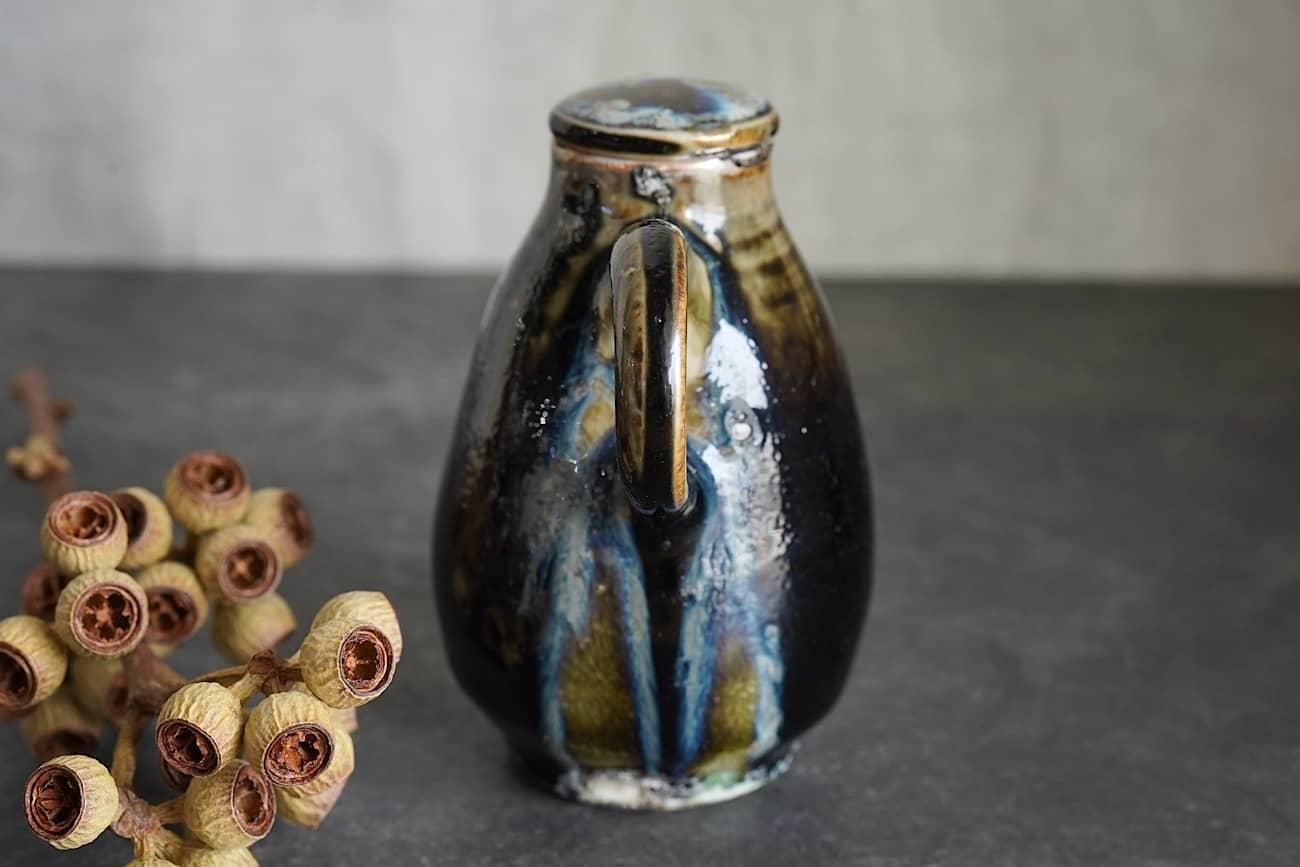 His technique how to use glaze is unique and the surface of his works look like antique which is used long time.