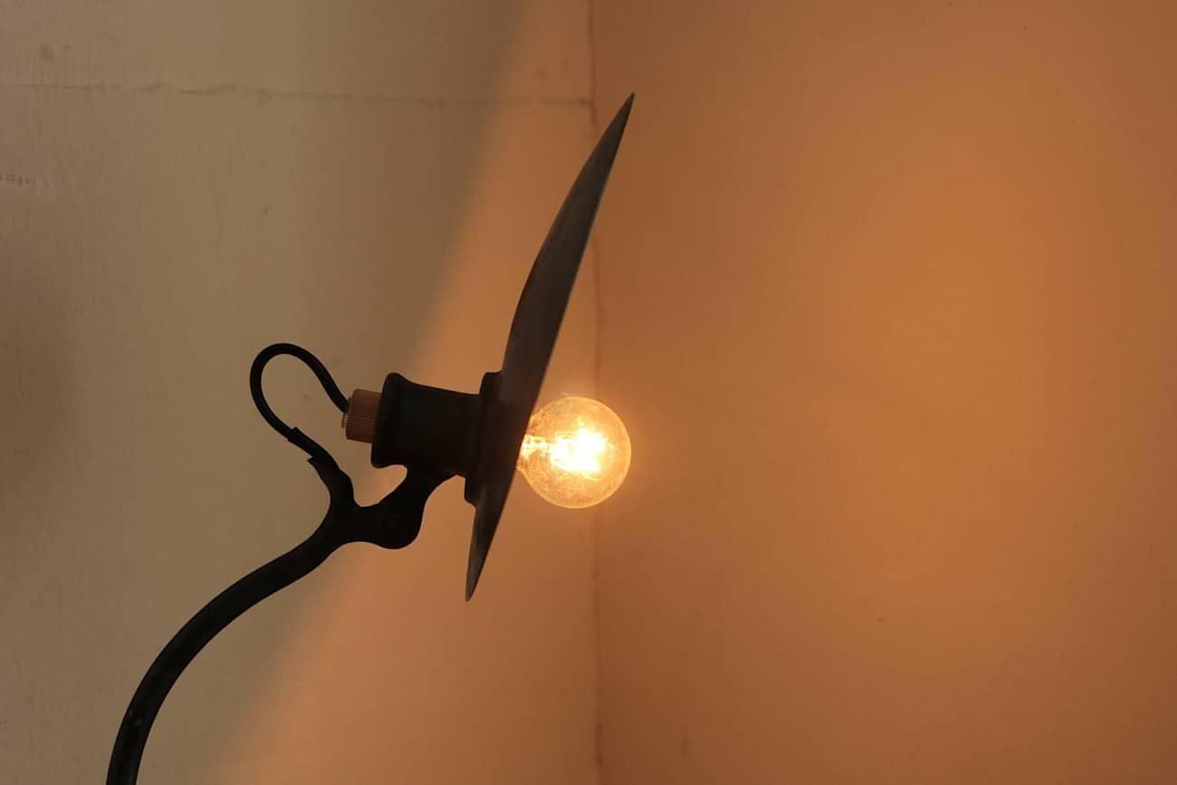 He makes lampshades, pans, vases and objects using metal, mainly iron.