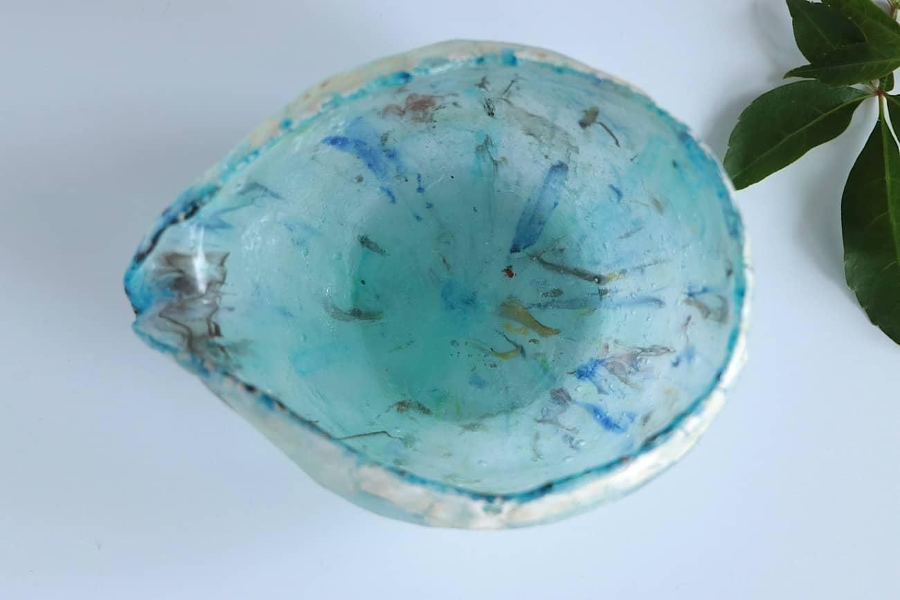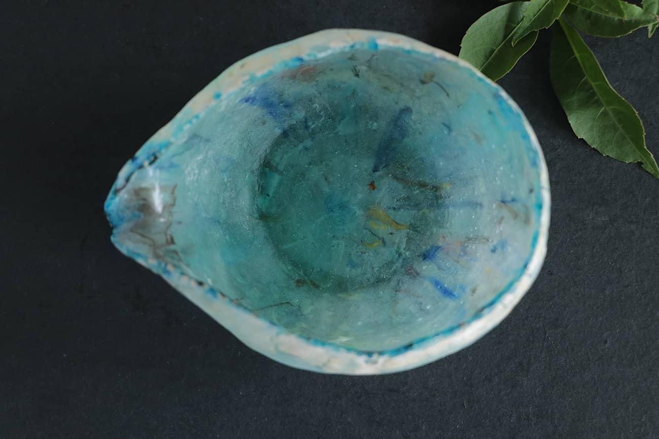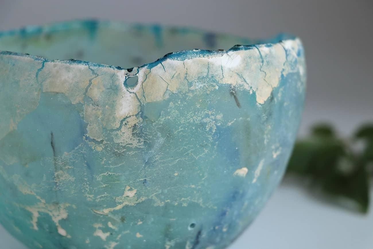 Glass casting is the technique of forming glass shapes by pouring molten glass into gypsum molds, and allowing it to cool and harden. It can create unique glass surfaces, depending on what kind of mold is used, or what materials are mixed with the glass. I intentionally mix different materials with the glass in my works.