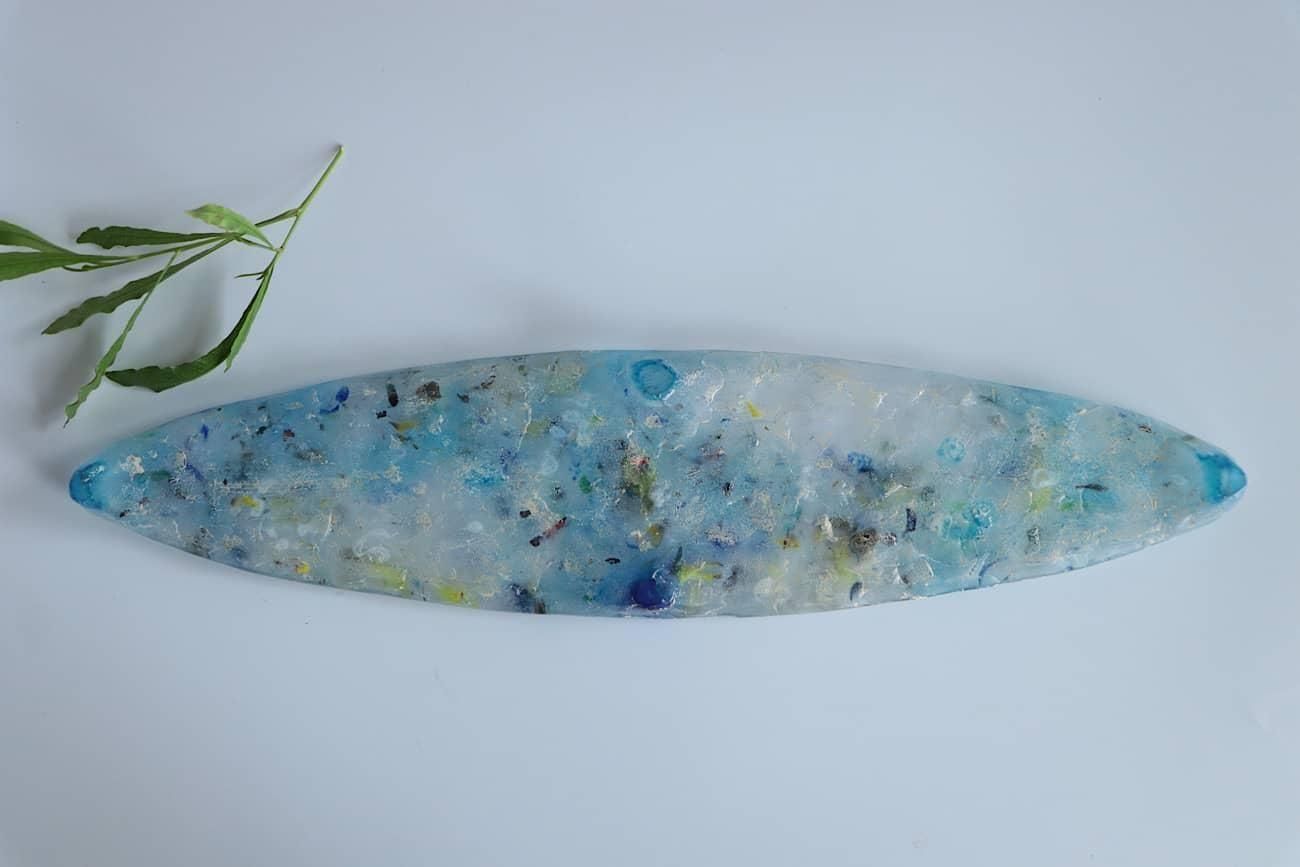 Glass casting is the technique of forming glass shapes by pouring molten glass into gypsum molds, and allowing it to cool and harden. It can create unique glass surfaces, depending on what kind of mold is used, or what materials are mixed with the glass. I intentionally mix different materials with the glass in my works.