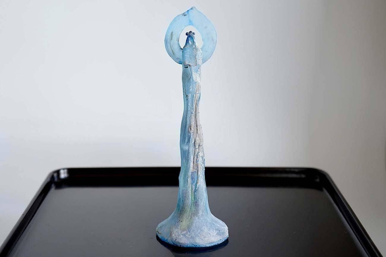 In order to make a gypsum mold, firstly, I figure a shape with wax, according to my own formula. The wax can be difficult to work with, given that it is vulnerable to heat and is not easy to keep cool enough in the summer to shape efficiently. After I make a shape with the wax, I put it in a small box and pour liquid plaster around it.