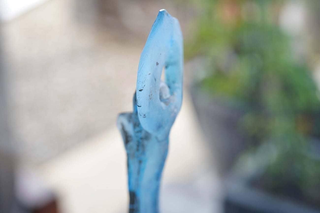 After an art piece is completed, the appearance of the soil and metal is influenced by how light falls on the object. So, changes occur each moment in a day. In a dark room, the character of soil appears more and the object may look like earthenware. In the morning sun or the evening sun, the character of glass appears more, as if the object itself cast the light.