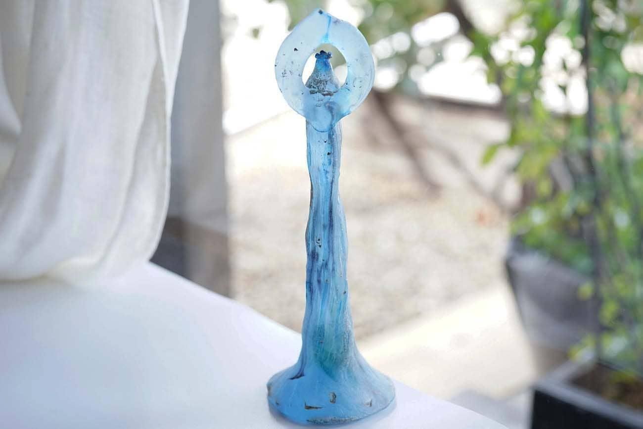 Glass casting is the technique of forming glass shapes by pouring molten glass into gypsum molds, and allowing it to cool and harden. It can create unique glass surfaces, depending on what kind of mold is used, or what materials are mixed with the glass. I intentionally mix different materials with the glass in my works.