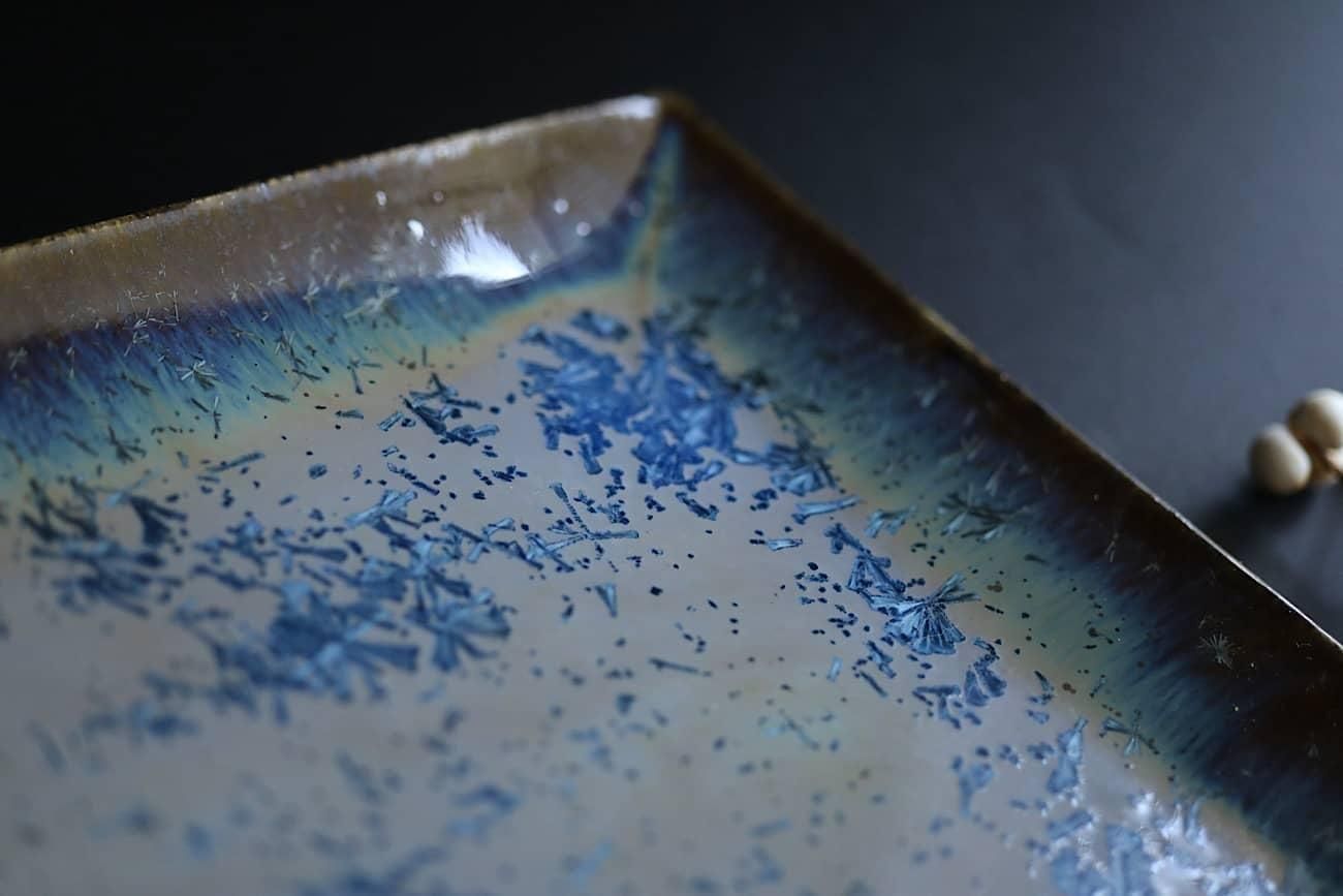 Crystalline glaze is a special glaze in which crystals of zinc silicate form in the glaze during the firing process in the kiln.