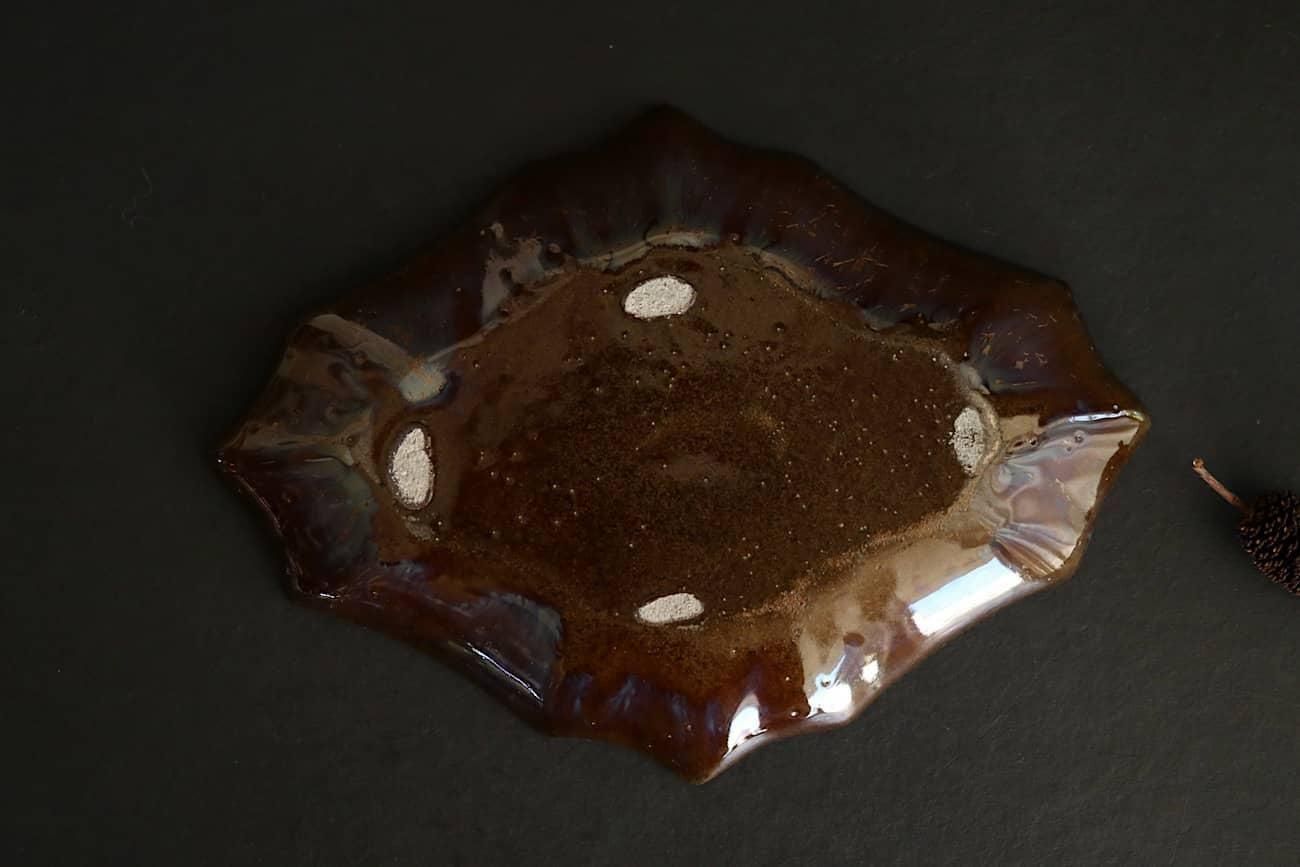By using iron-bearing clay, the glaze and the clay create a complex gradation.