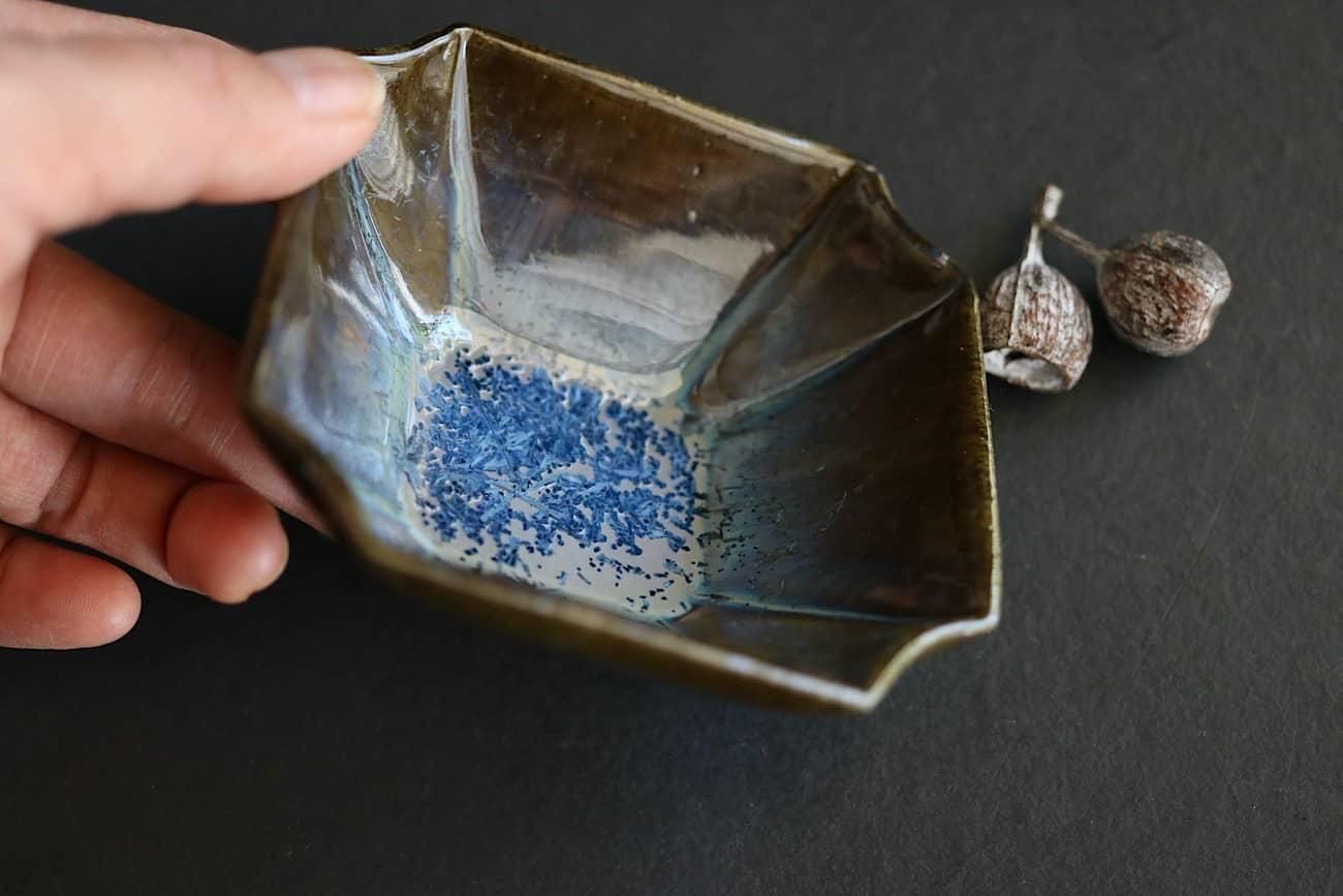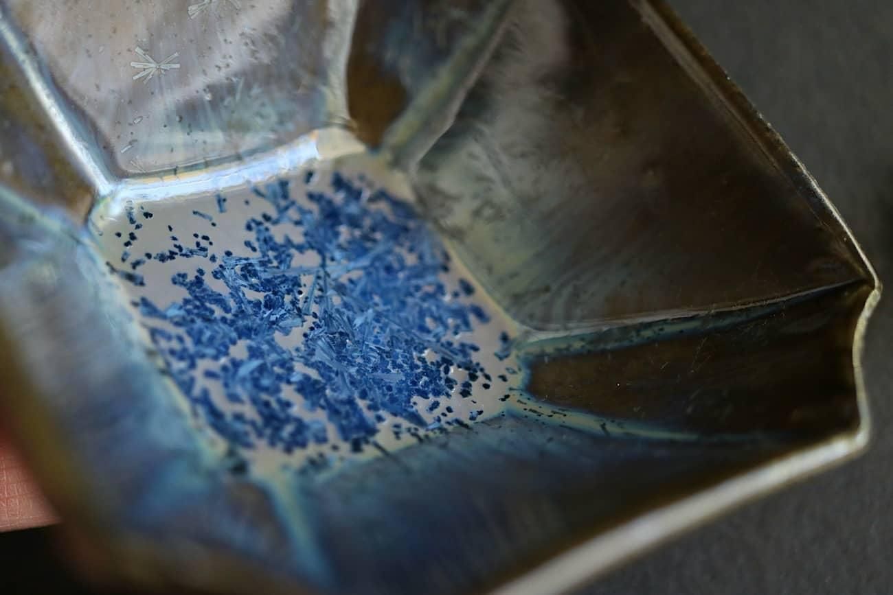 Crystalline glaze is a special glaze in which crystals of zinc silicate form in the glaze during the firing process in the kiln.