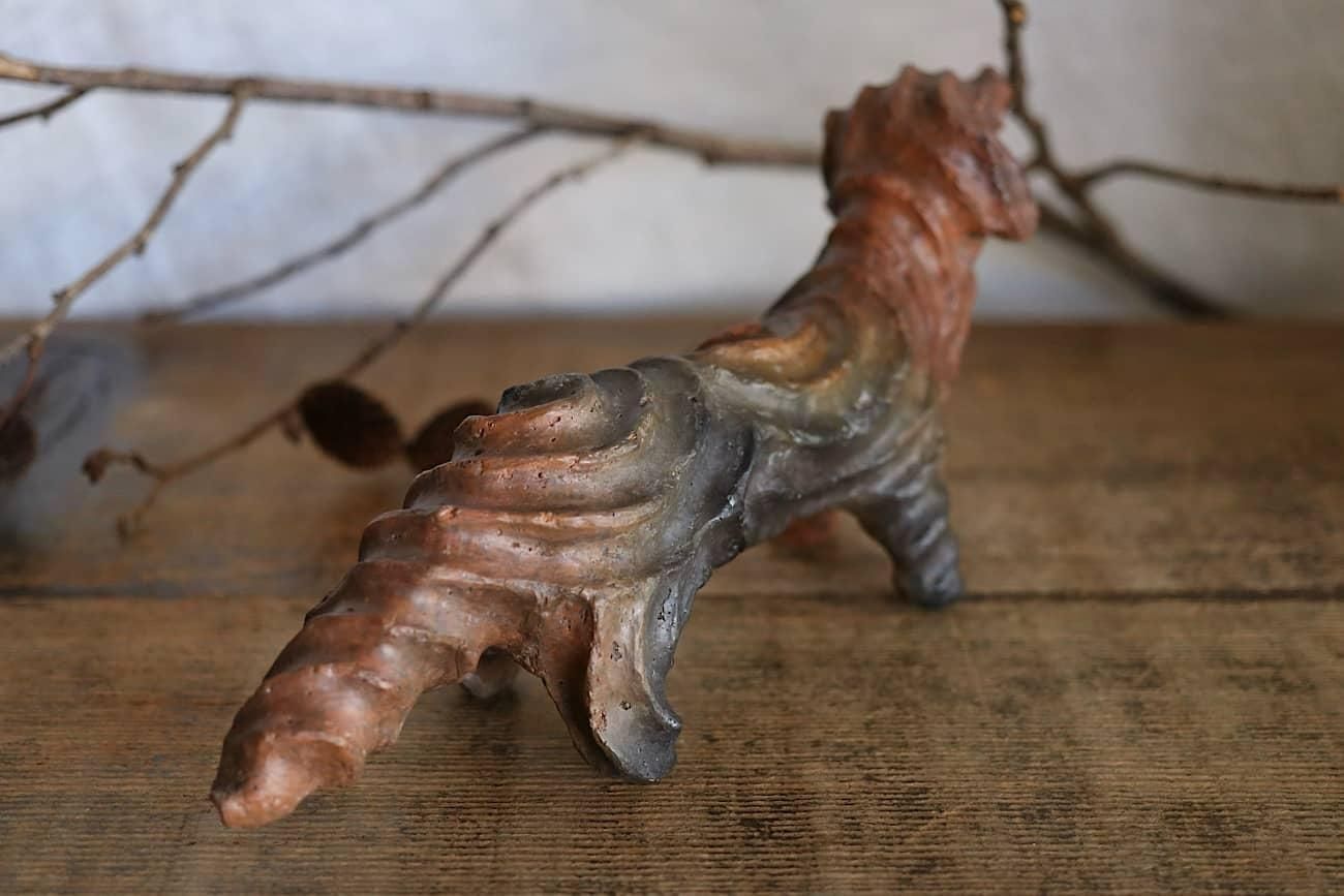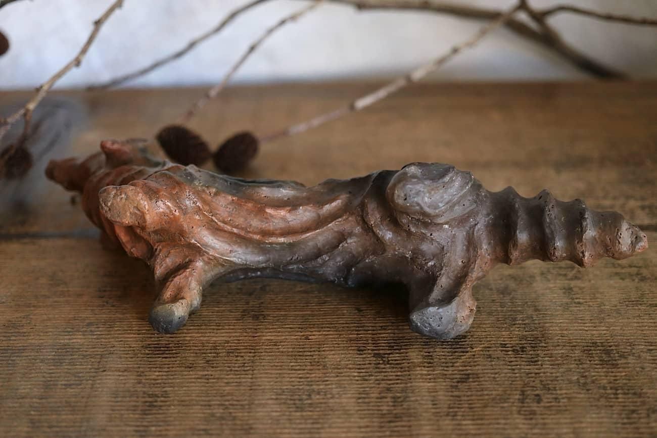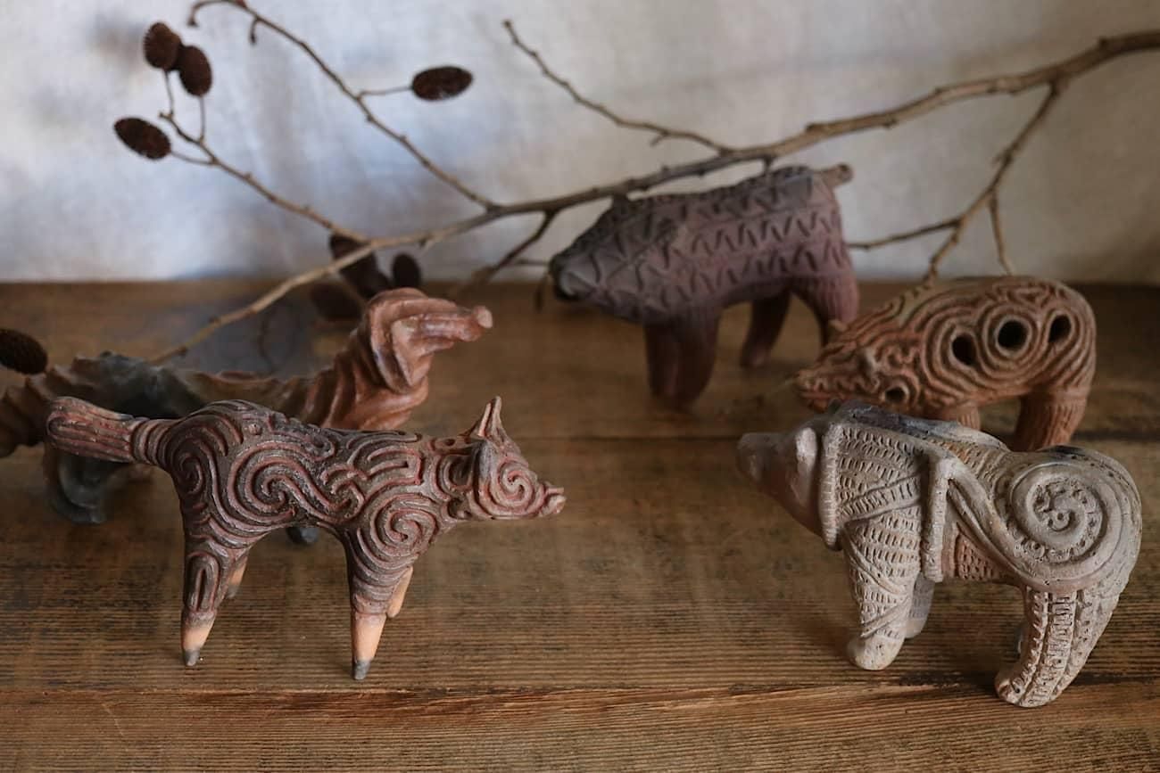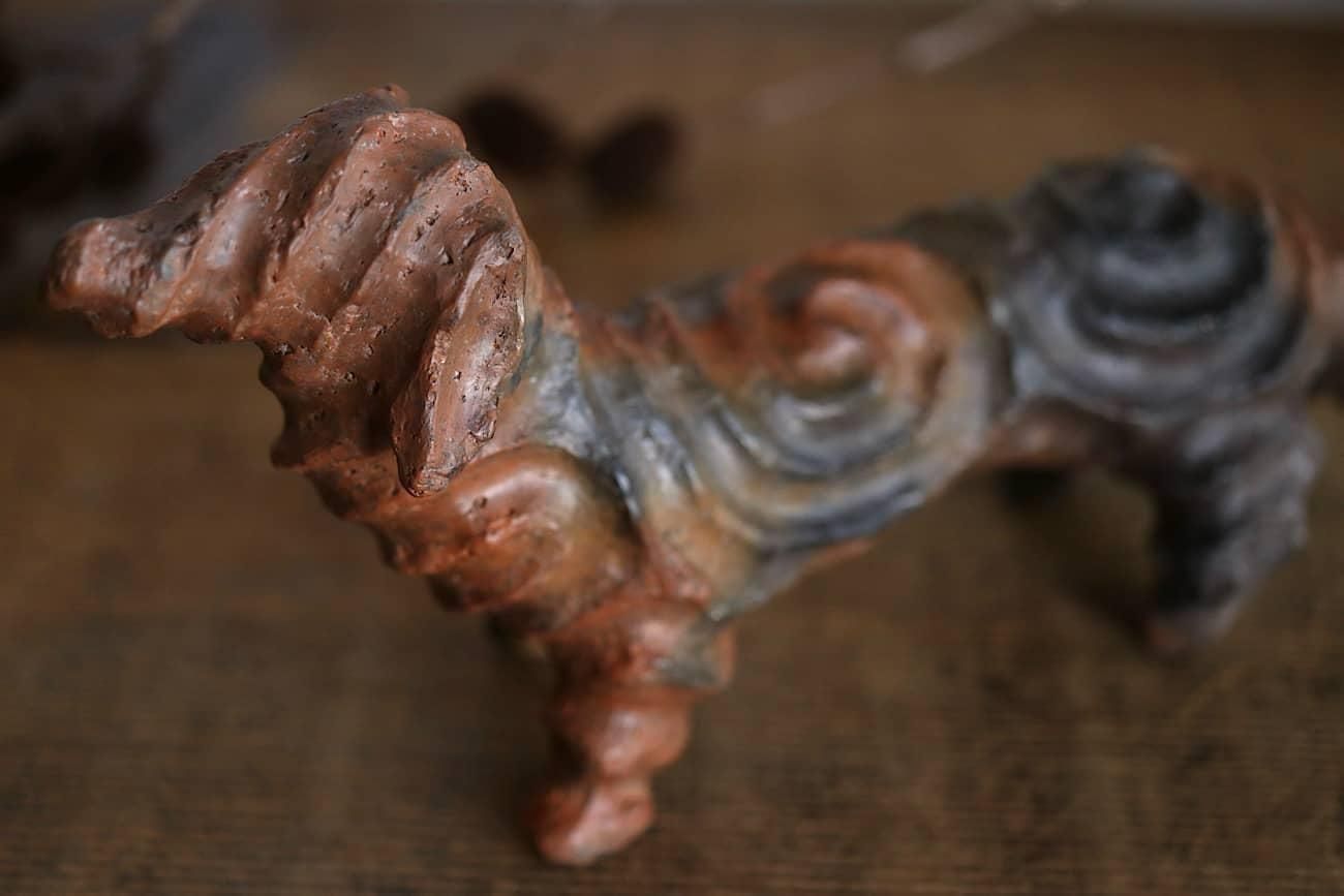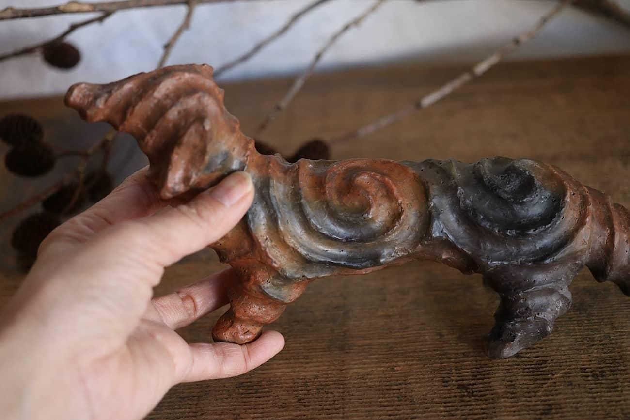He creates sculptures made by open-fire methods, just like in the Jomon period, and usable earthenware made by applying lacquer to open-fired pottery.