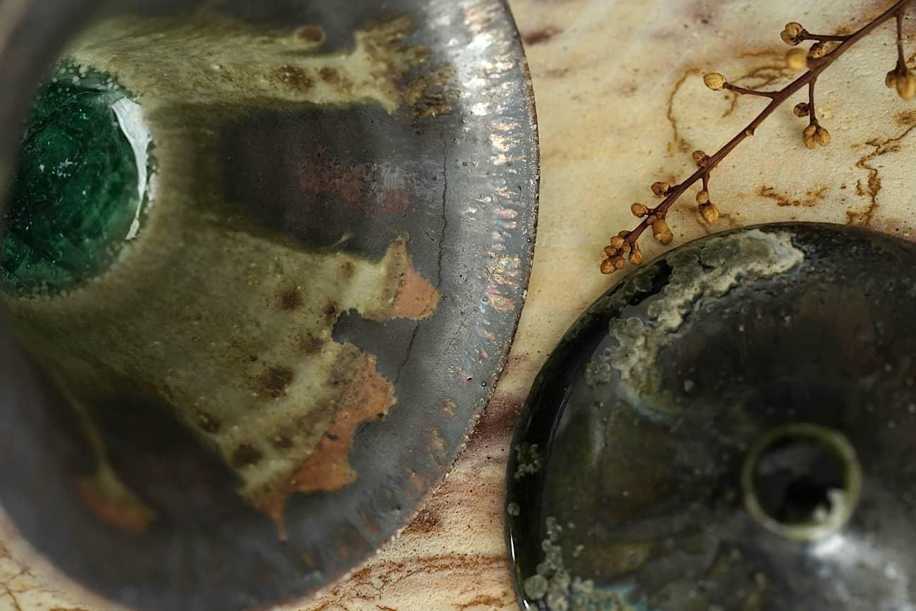 His technique how to use glaze is unique and the surface of his works look like antique which is used long time.